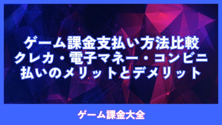 ゲーム課金支払い方法比較など。クレカ・電子マネー・コンビニ払いのメリットとデメリット