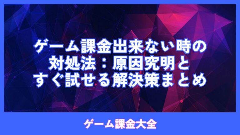 ゲームで課金が出来ない場合、その原因は「支払い方法の不具合」「アカウントの制限」「通信エラー」など多岐にわたります。 課金できない主な原因 ゲーム課金ができない原因は多岐にわたりますが、主に「支払い方法の不具合」「アカウントの制限」「通信エラー」に分類され、まず支払い方法では、クレジットカードの有効期限切れや登録情報の誤り、ギフトコードの入力ミスなどがよくある原因です。 たとえばカードの住所が登録 […]